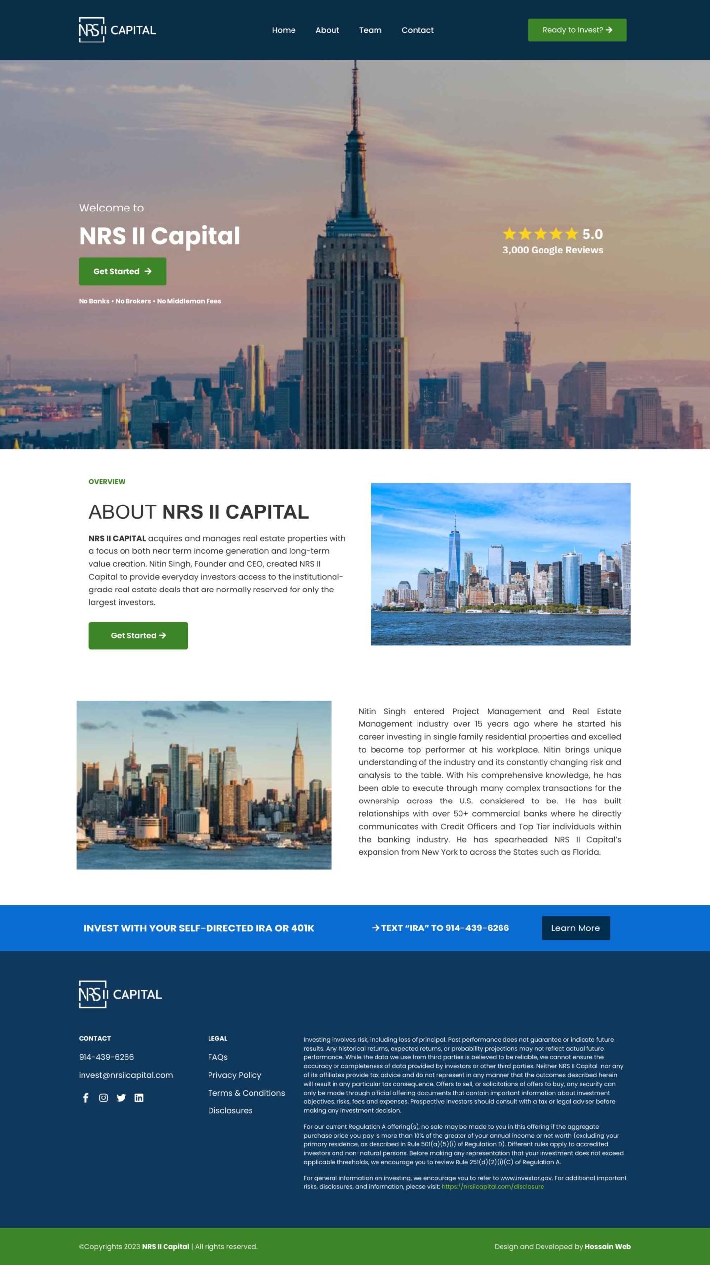 NRS II CAPITAL acquires and manages real estate properties with a focus on both near term income generation and long-term value creation. Nitin Singh, Founder and CEO, created NRS II Capital to provide everyday investors access to the institutional-grade real estate deals that are normally reserved for only the largest investors.
